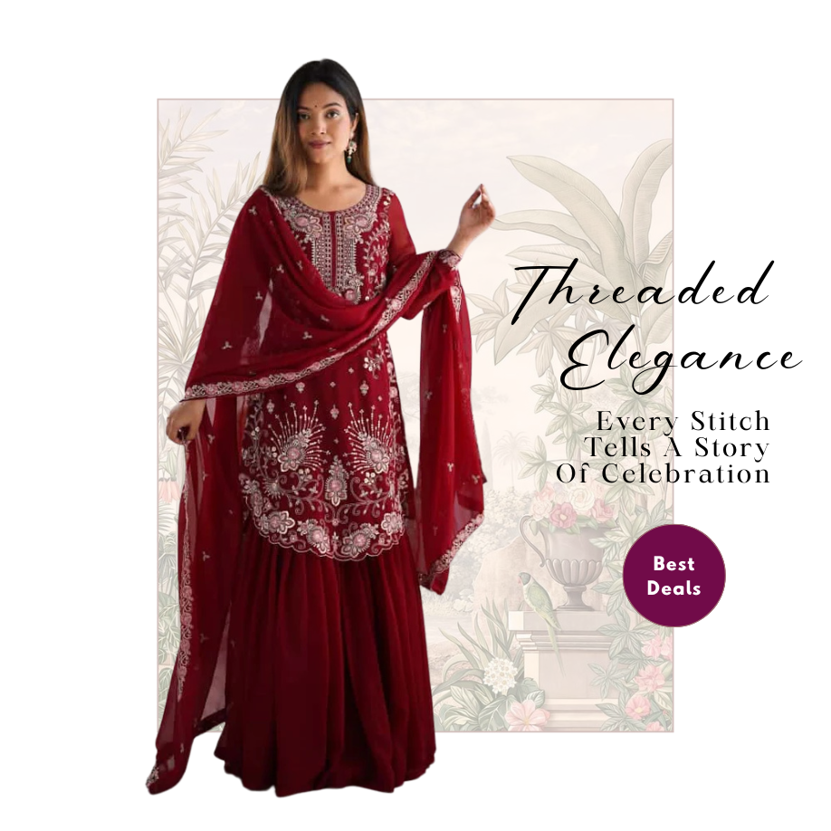 "Elegant Georgette Kurti & Sharara Set with Sequence & Thread Embroidery"